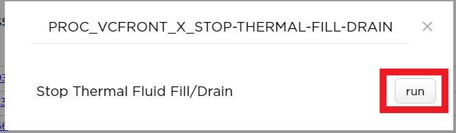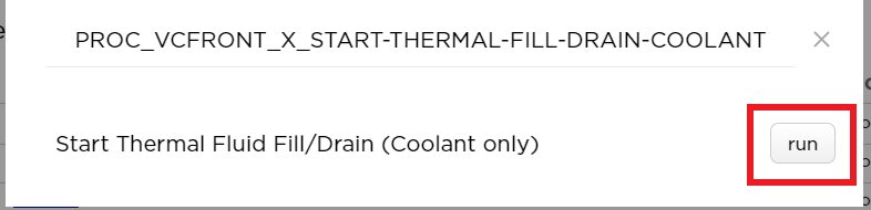 运行“停止温度系统液体加注/排放”例行程序。 PROC_VCFRONT_X_STOP-THERMAL-FILL-DRAINvia Toolbox: (link)via Service Mode: