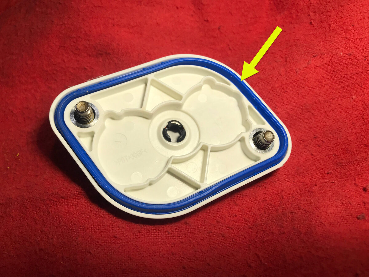 检查高压电池仓探针盖垫片,然后将其放置在高压电池仓盖板上