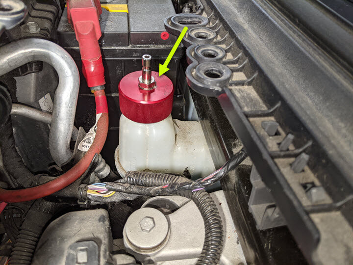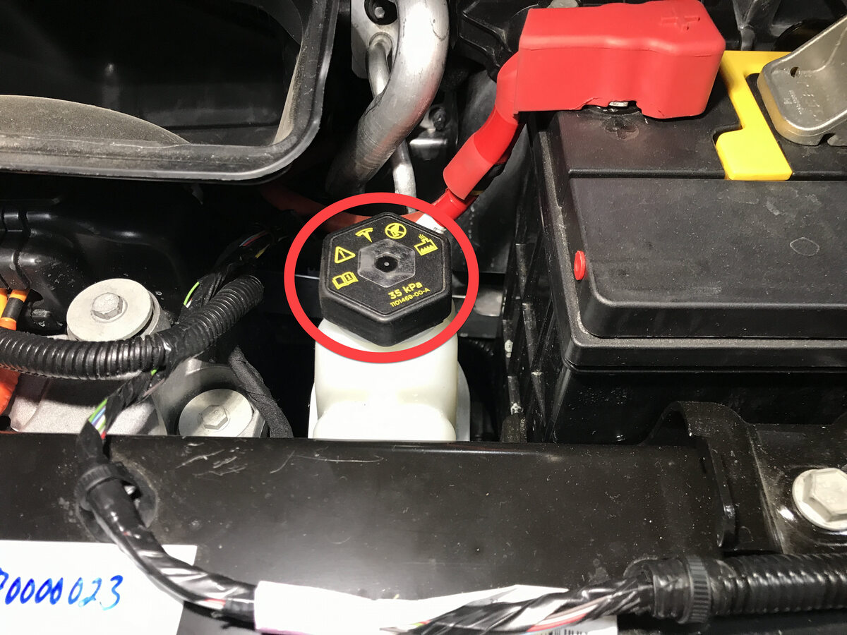 - 将重新加注工具盖从冷却液罐总成上拆下