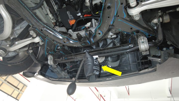将可充气袋垂直安装于前平衡杆和前裙板之间,以确保存在足够操作空间。
