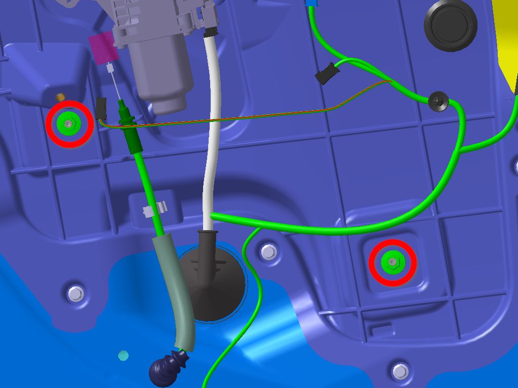 注将升降器臂逐个移动到车门内,以便安装,然后将螺柱放置在车门上。