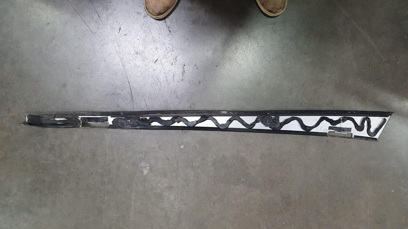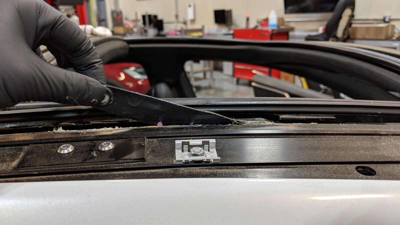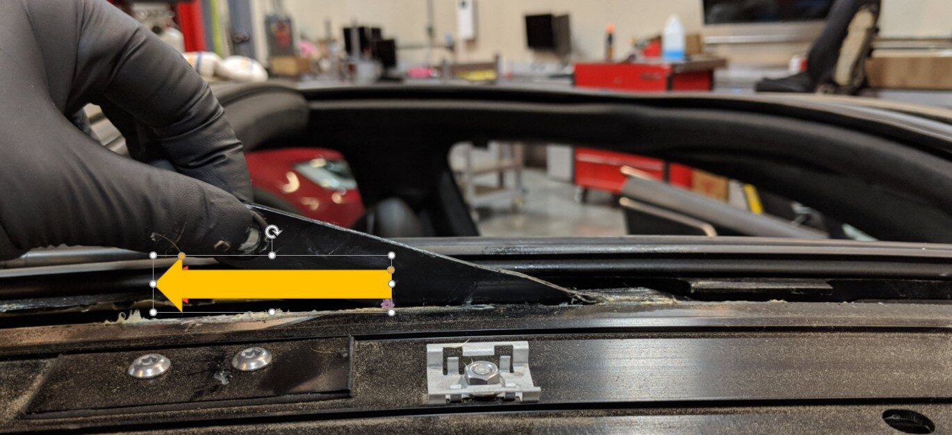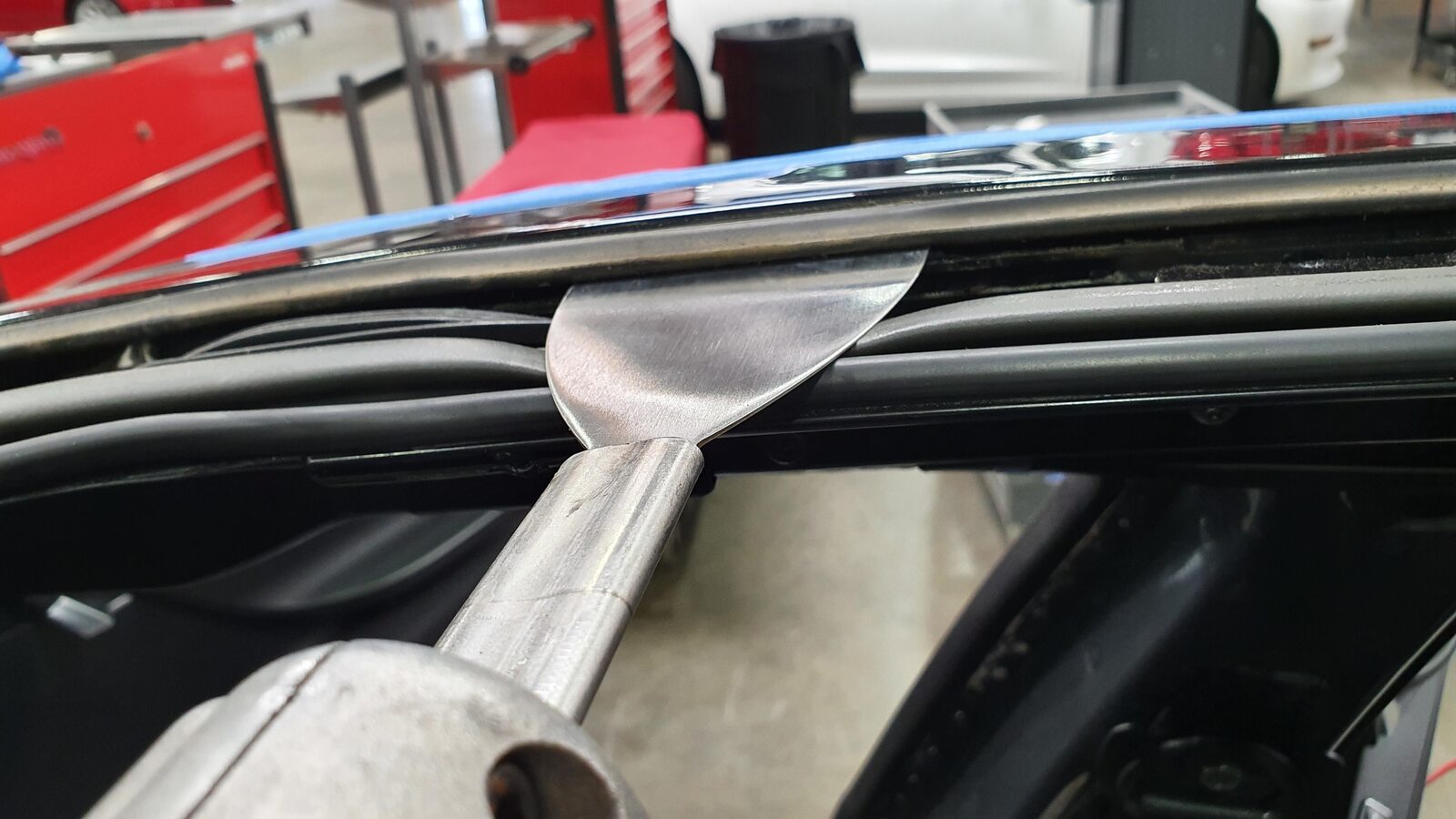 NoteUsing Hydroblade tool and glass cleaner for lubrication cut through urethane to free 1.0 side applique, Ensure to clear the seals and cut through the urethane, Careful not to damage the paint on the roof rail as you cut