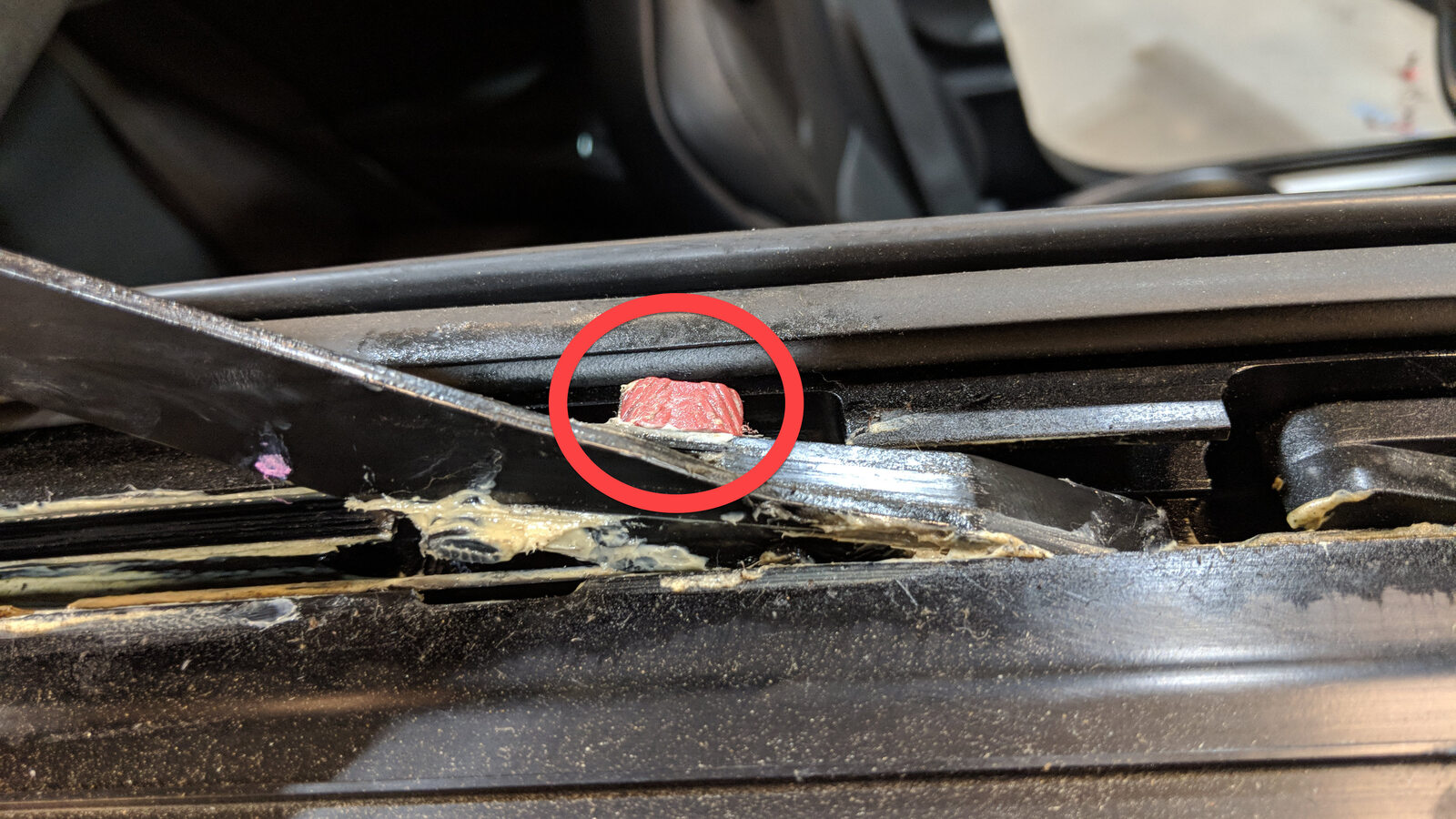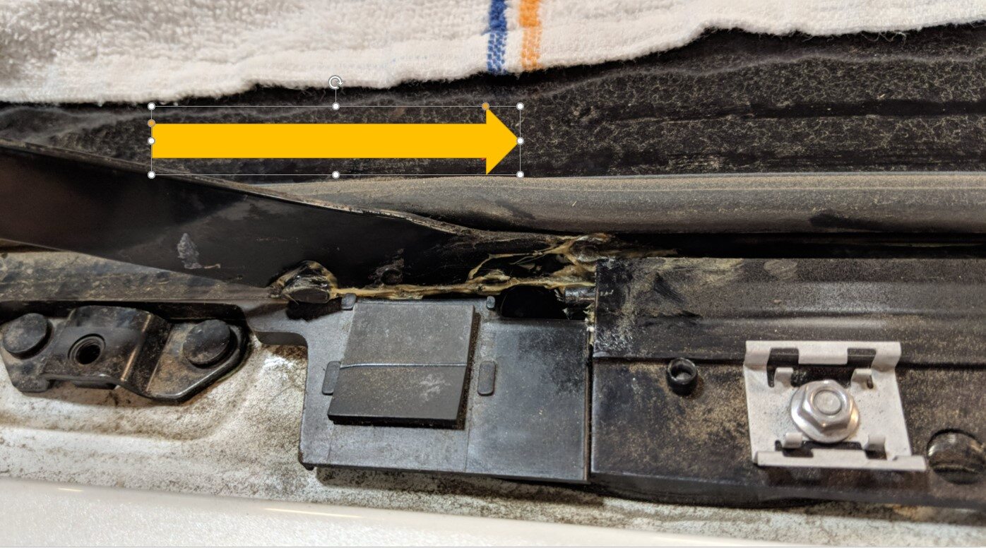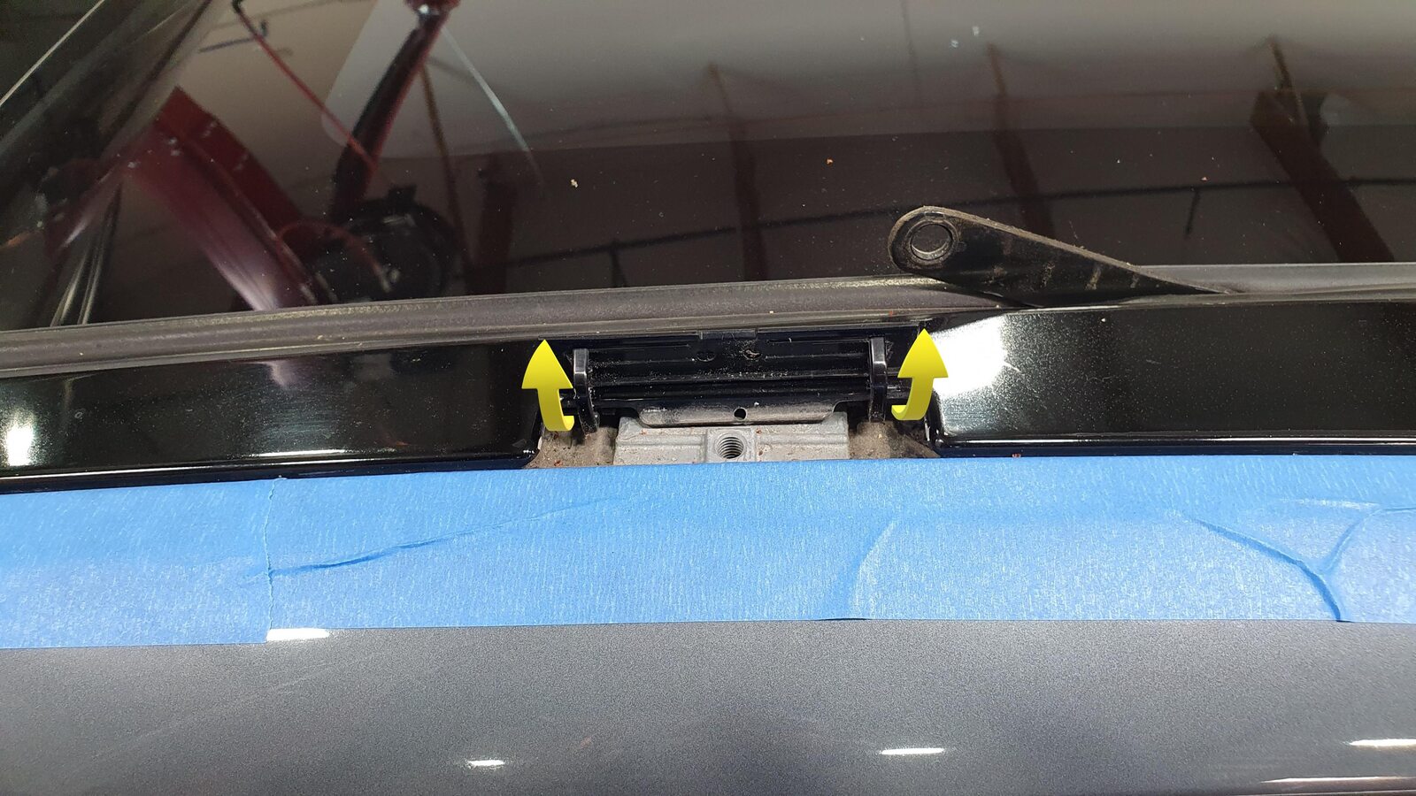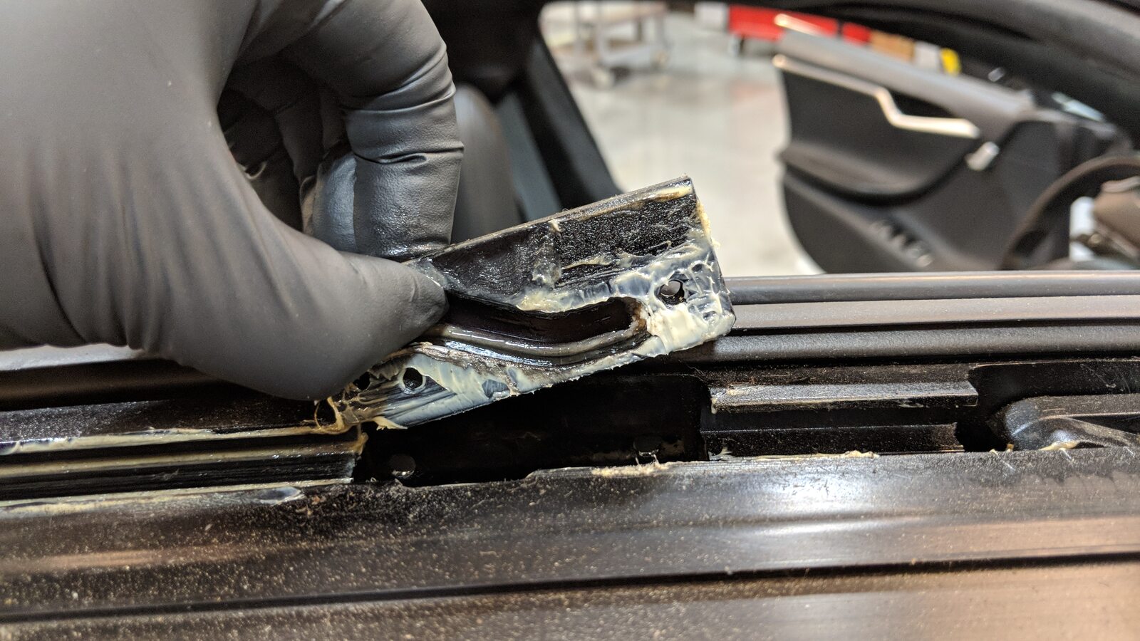 NoteUsing Hydroblade tool and glass cleaner for lubrication cut through urethane to free 1.0 side applique, Ensure to clear the seals and cut through the urethane, Careful not to damage the paint on the roof rail as you cut