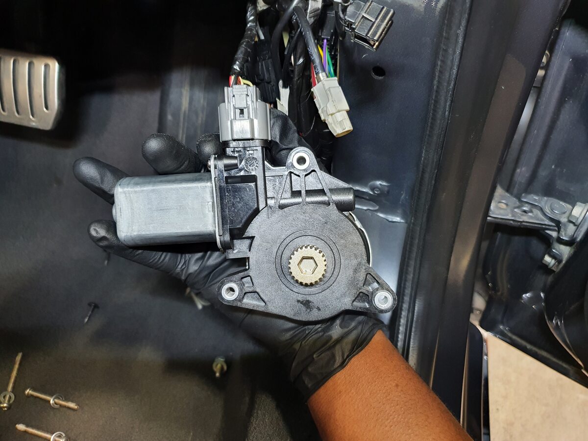 NoteBoth rear link and drive cable should fix like a puzzle, Careful not to damage fixed glass or side rail