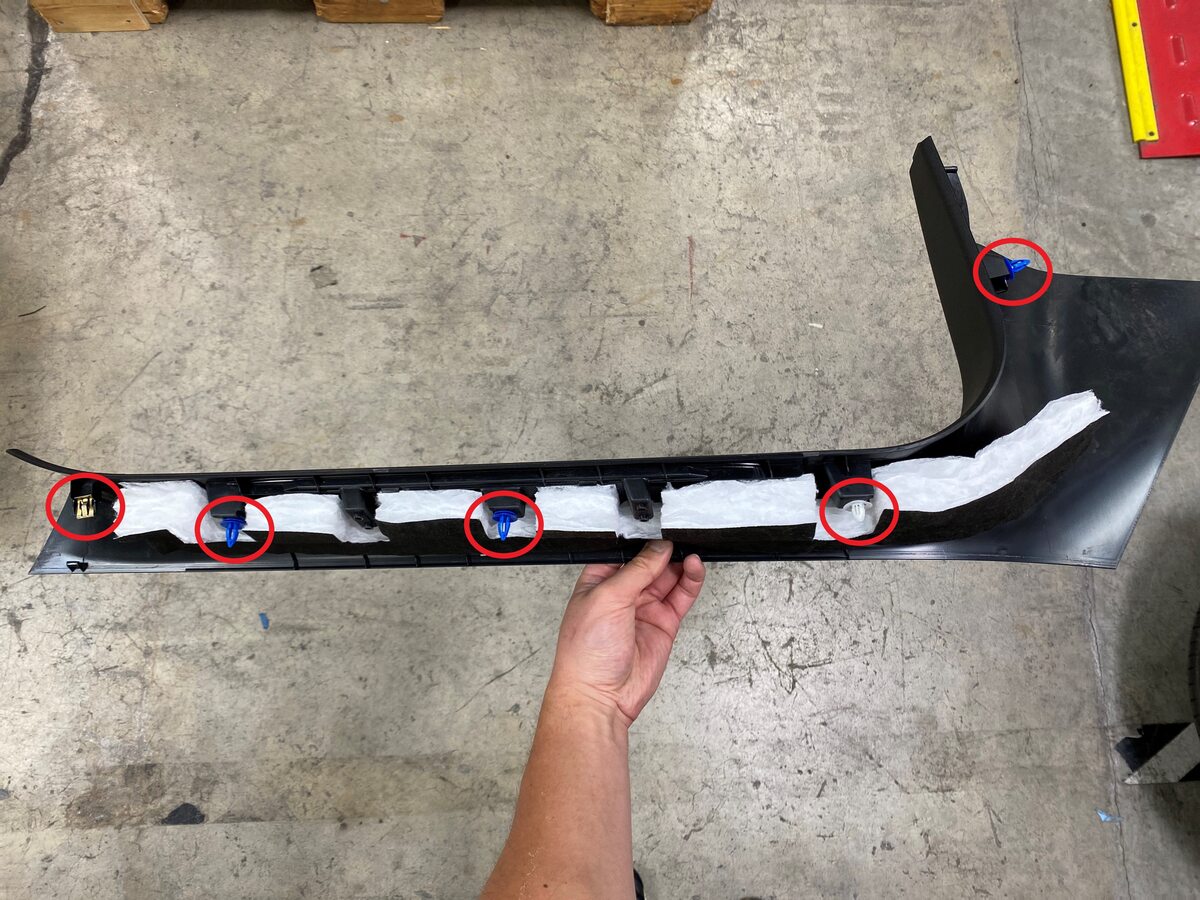 Note4x clips, The number of clips securing the a pillar sill trim varies depending on vehicle production date, Replace any damaged or missing clips prior to re-installing sill trim
