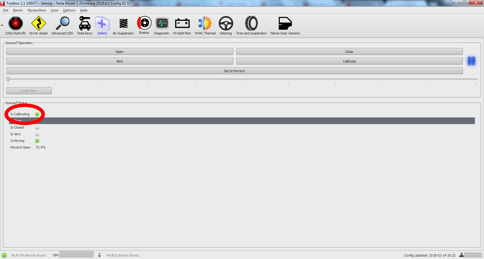 Select ‘Actions’ tab and search for ‘Calibrate Sunroof’