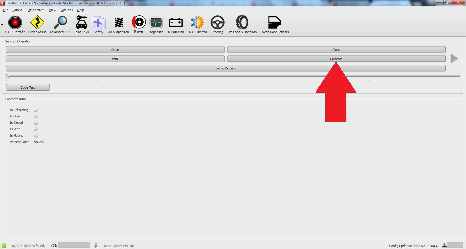 Select ‘Calibrate sunroof’, click ‘Run’, and allow routine to complete