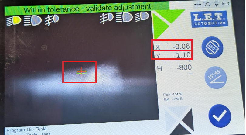 - 2026-02-18: Updated adjustment values for X and Y using the LET headlight tester.
