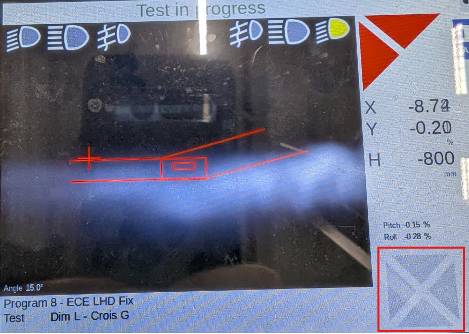 - On the headlight tester tool, select the Left low beam and then select the Low beam icon near the bottom of the screen.