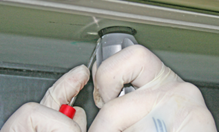 Put on disposable nitrile gloves.WarningThe next steps must be performed in a well-ventilated area while wearing a 3M P95 Particulate Respiratory Mask or equivalent. Refer to all product instructions and warnings for proper application method and safety precautions