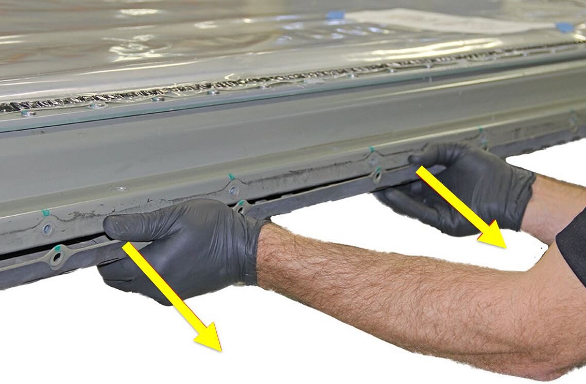 NoteRemove the clamps and pull the RH side rail ski away from the HV battery and pivot it downwards to remove