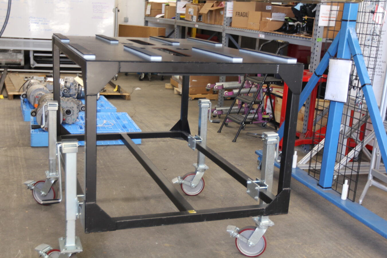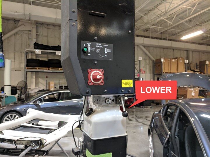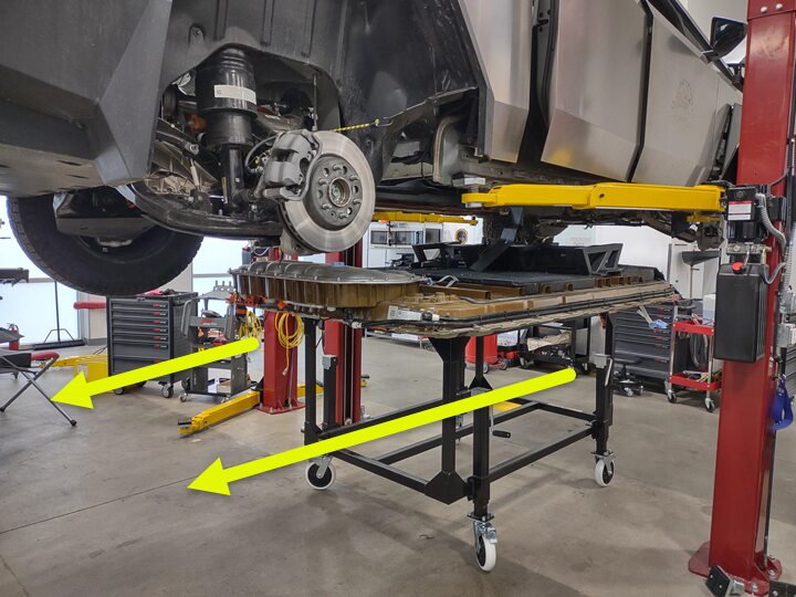 NotePrepare a workspace around a two post lift with nearby access to HV PPE, Battery table, and necessary tooling