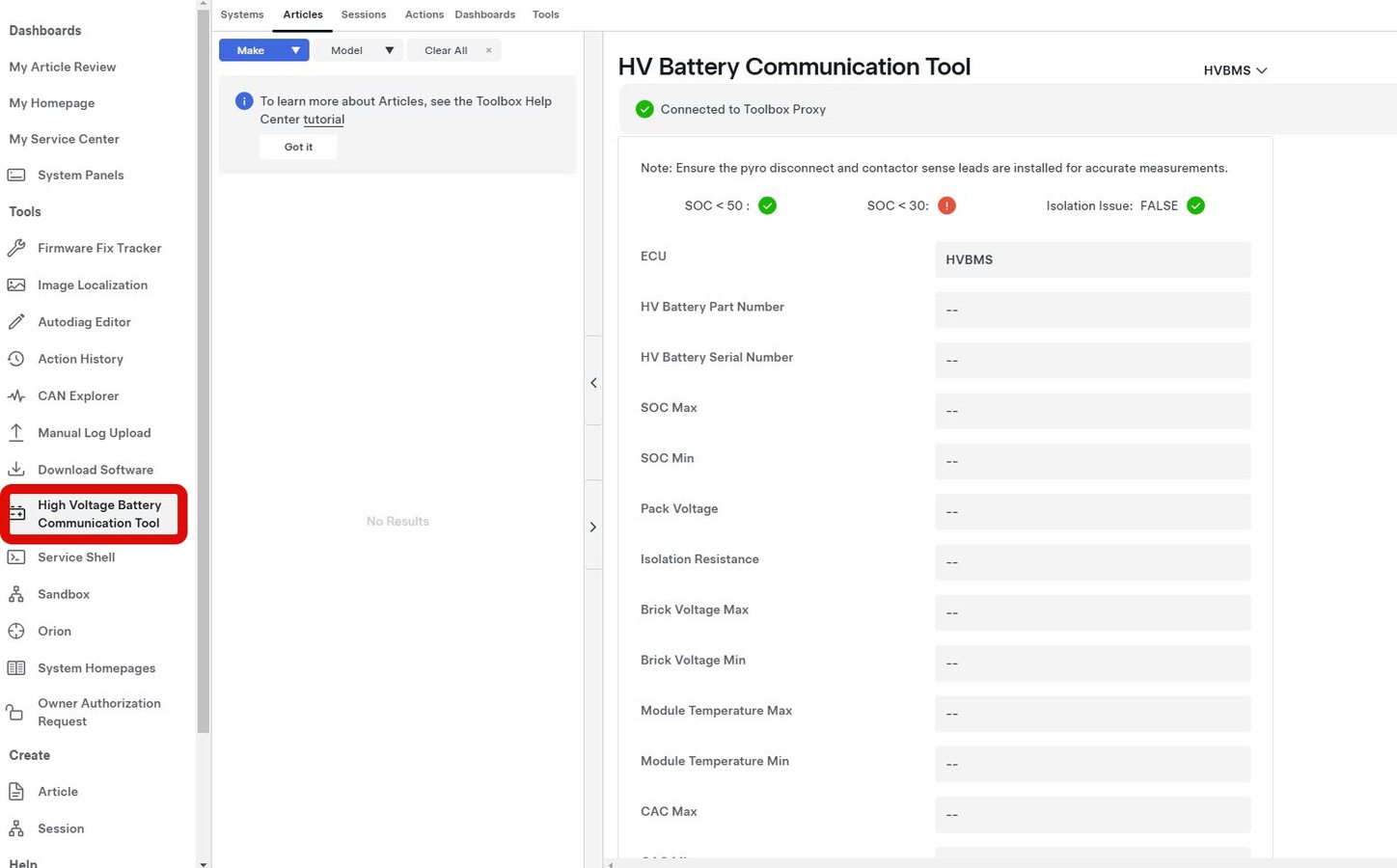 Open HV Battery Communication Tool in Toolbox