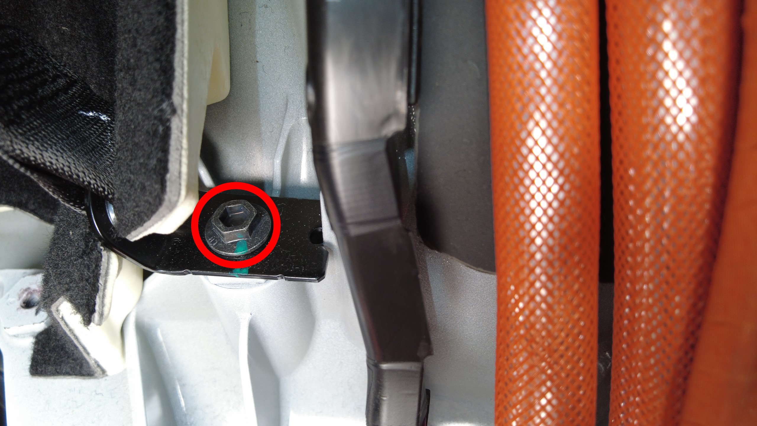 安装新的螺栓,将第二排左侧座椅安全带下部锚固件固定到车身。