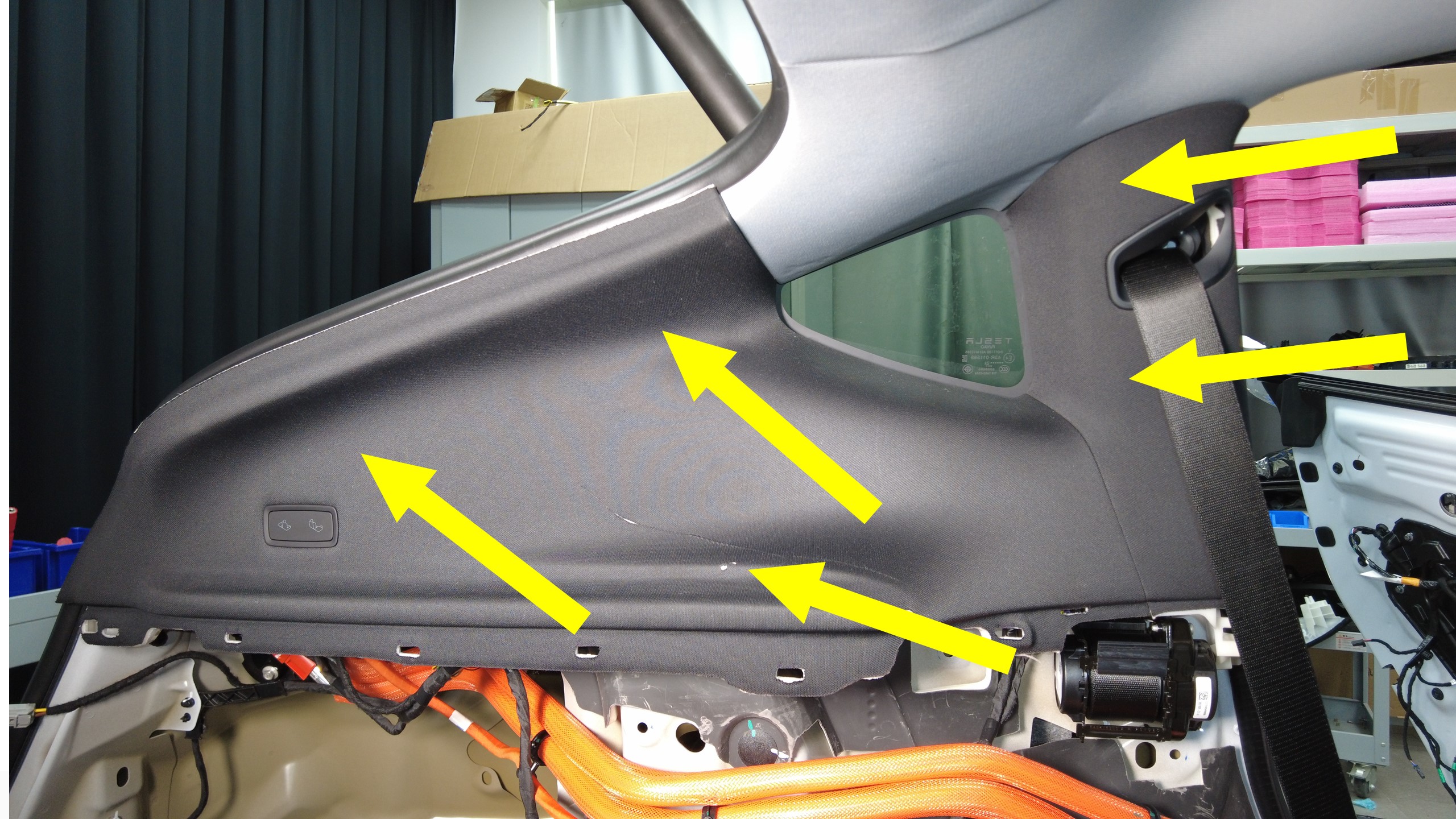 安装用于固定 C 柱上部饰板的夹子 (x7)。