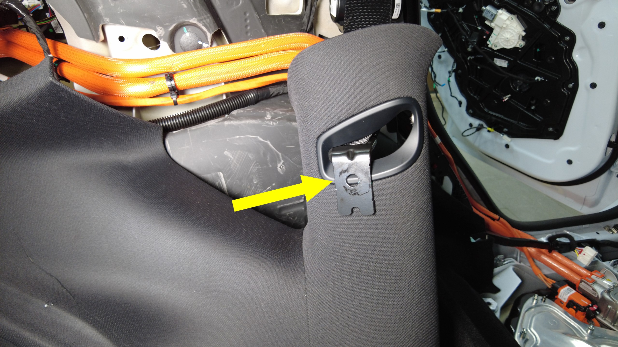 连接第二排座椅放倒开关。