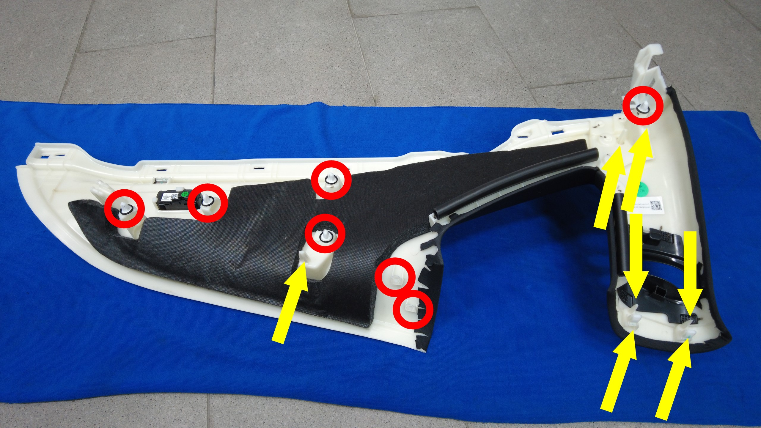 安装用于固定 C 柱上饰板车门主密封条的卡子。