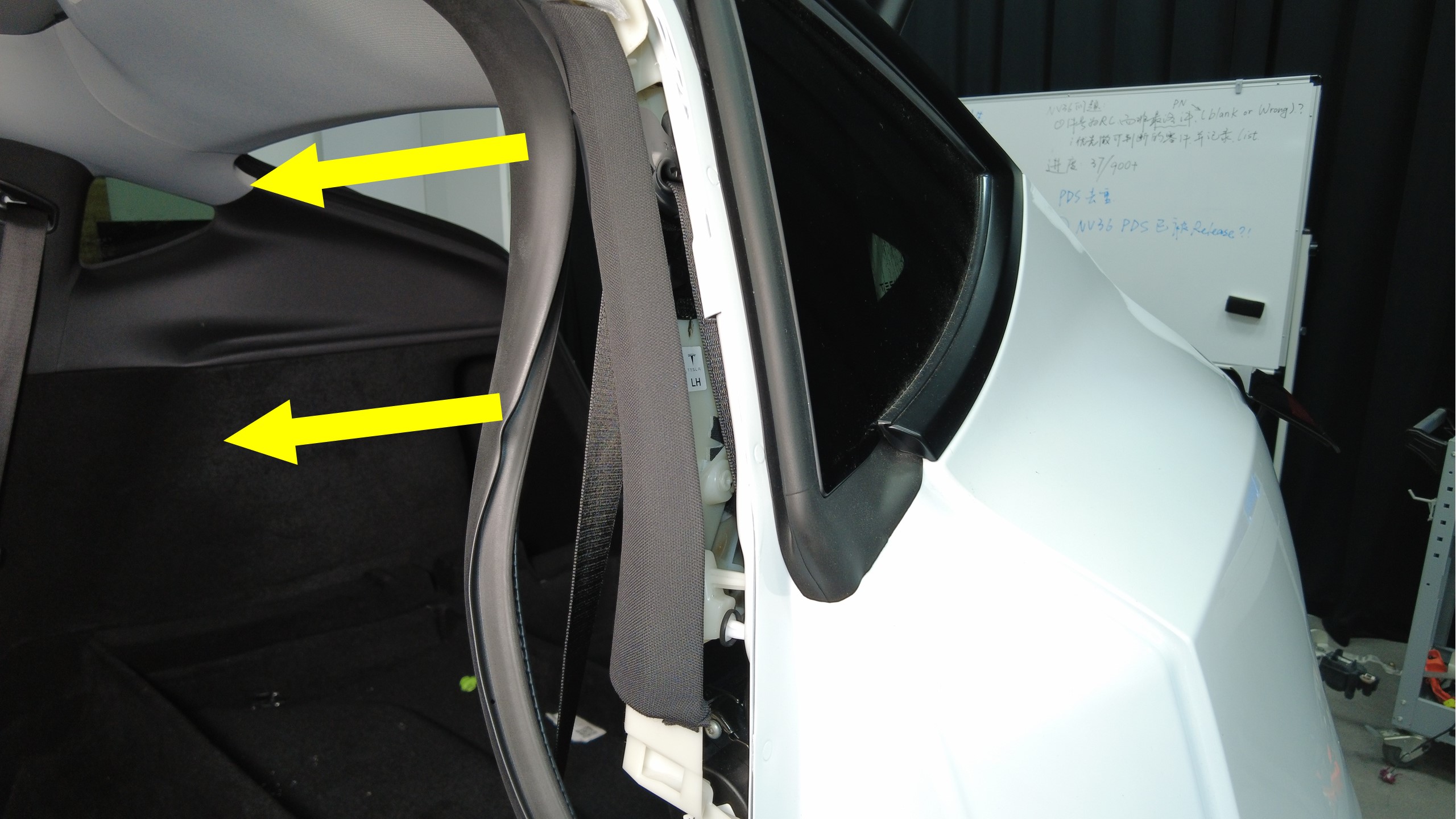 将左后车门密封条放回原位。