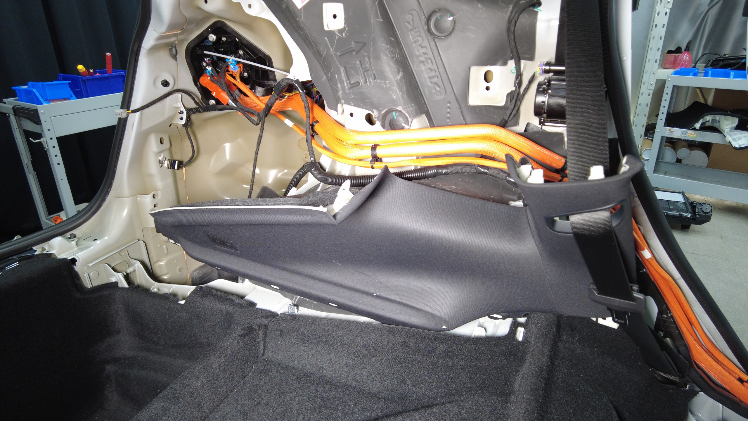 将充电接口手动释放缆索从饰板上松开,使饰板置于后备箱底板上。