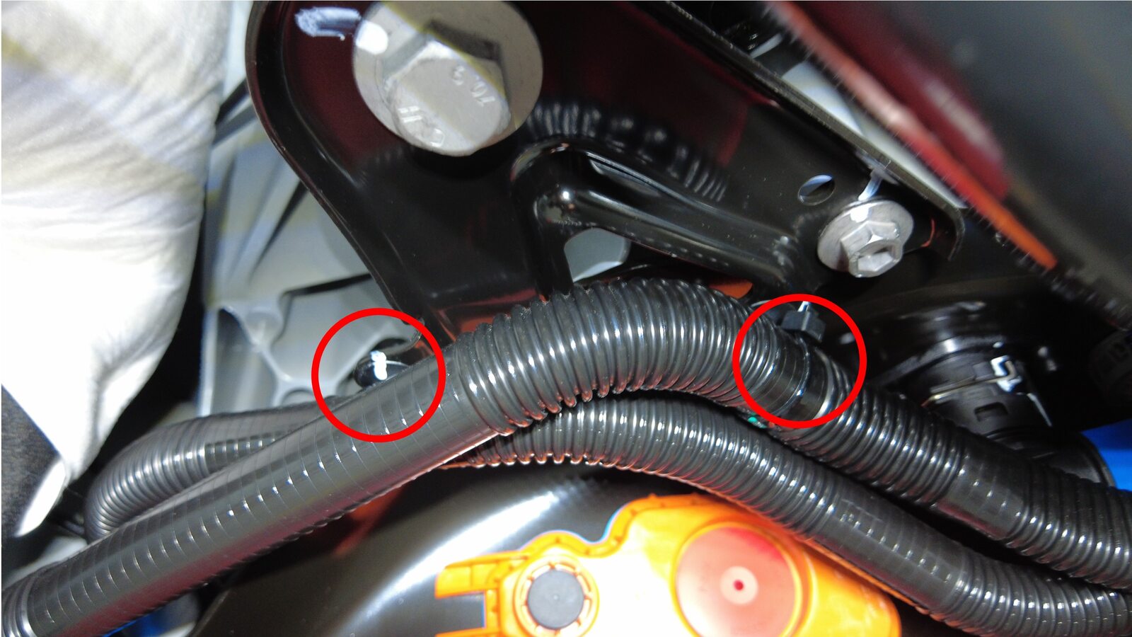 | 将左侧剪力板和后副车架固定到车身的大号螺栓 |