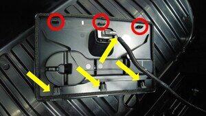 连接连接器,然后安装将检修板固定到车辆的卡子(3 个)和导片(3 个)。