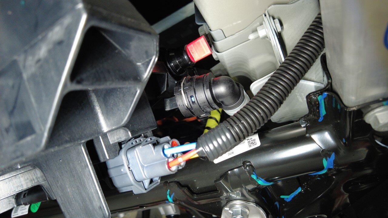 安装将转向机线束固定到前备箱储物单元加固支架的夹子(3 个)。