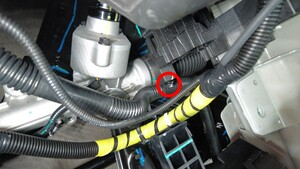 松开将转向机线束固定到前备箱储物单元加固支架的夹子(3 个)。