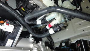 取下超级歧管和散热器入口软管上的塞子,立即将散热器入口软管与超级歧管相连,然后紧固卡子。