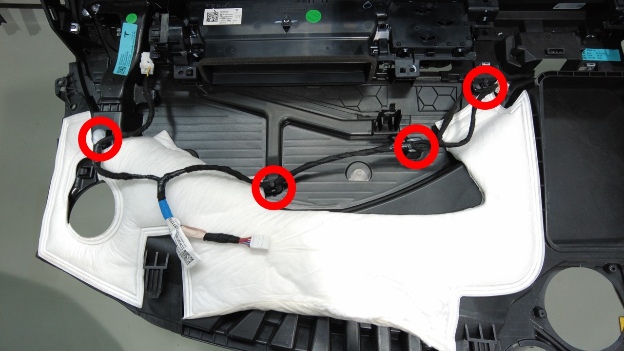 安装夹子(4 个),以紧固仪表板左侧饰板线束。