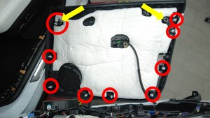 - 拆下左侧高频扬声器。请参阅高音扬声器 - 前车门 - 左 ((拆卸和更换))。
