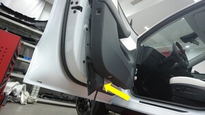 将左前车门饰板放置在有垫层且稳定的支撑面上。