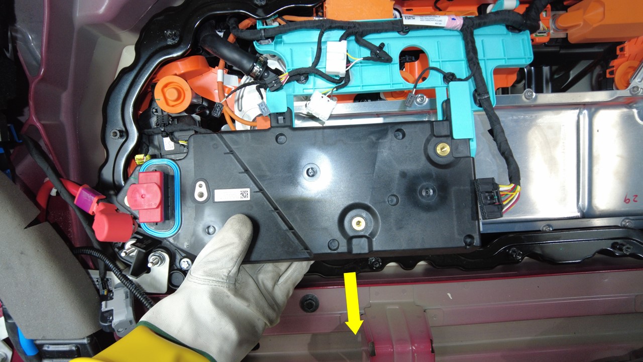 检查高压电池仓盖板是否损坏。