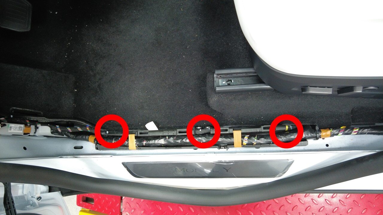 安装将左侧座椅线束紧固到门槛饰板的卡子。