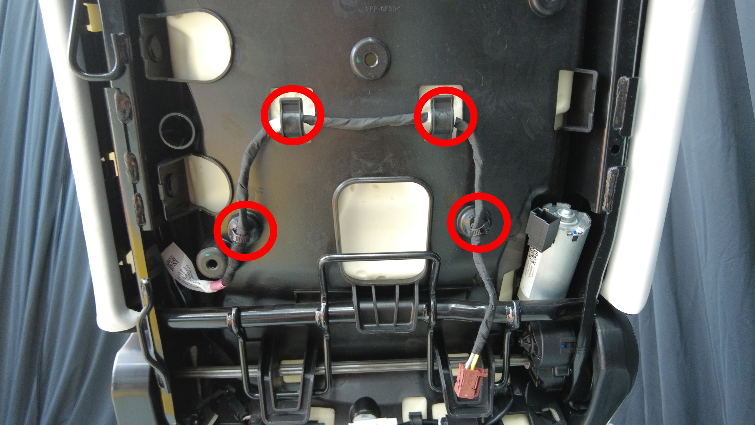Release 2nd row 40 seat backrest adjustment motor harness from substrate.