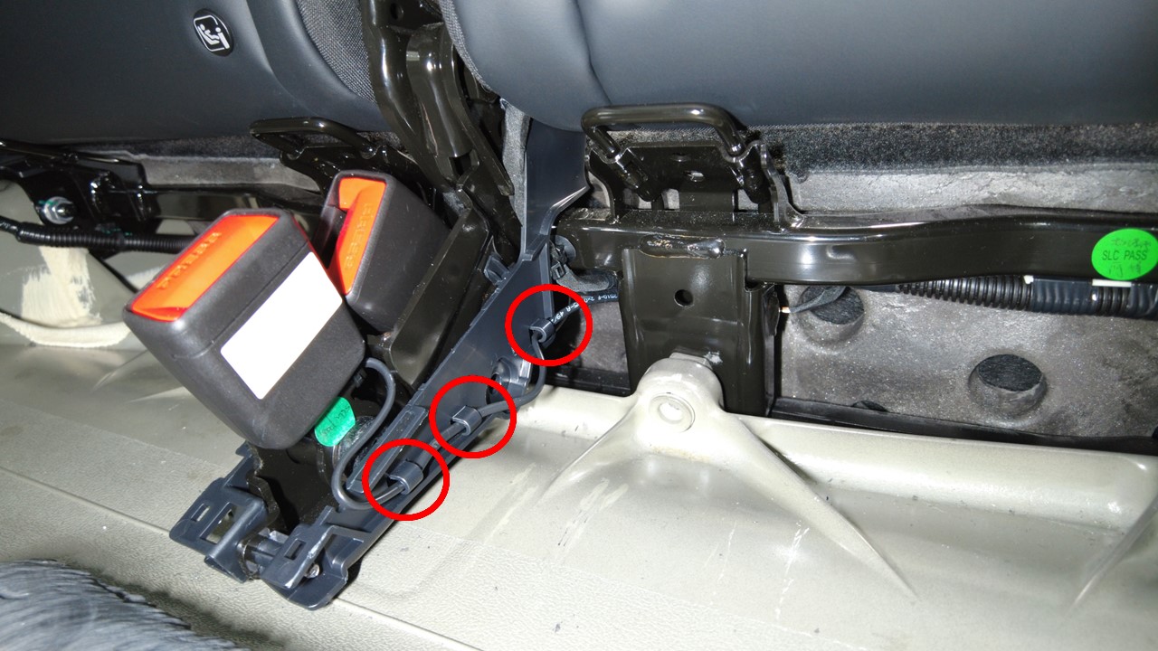 将第三排左侧锁扣线束夹(3 个)安装到中间内侧护罩上。