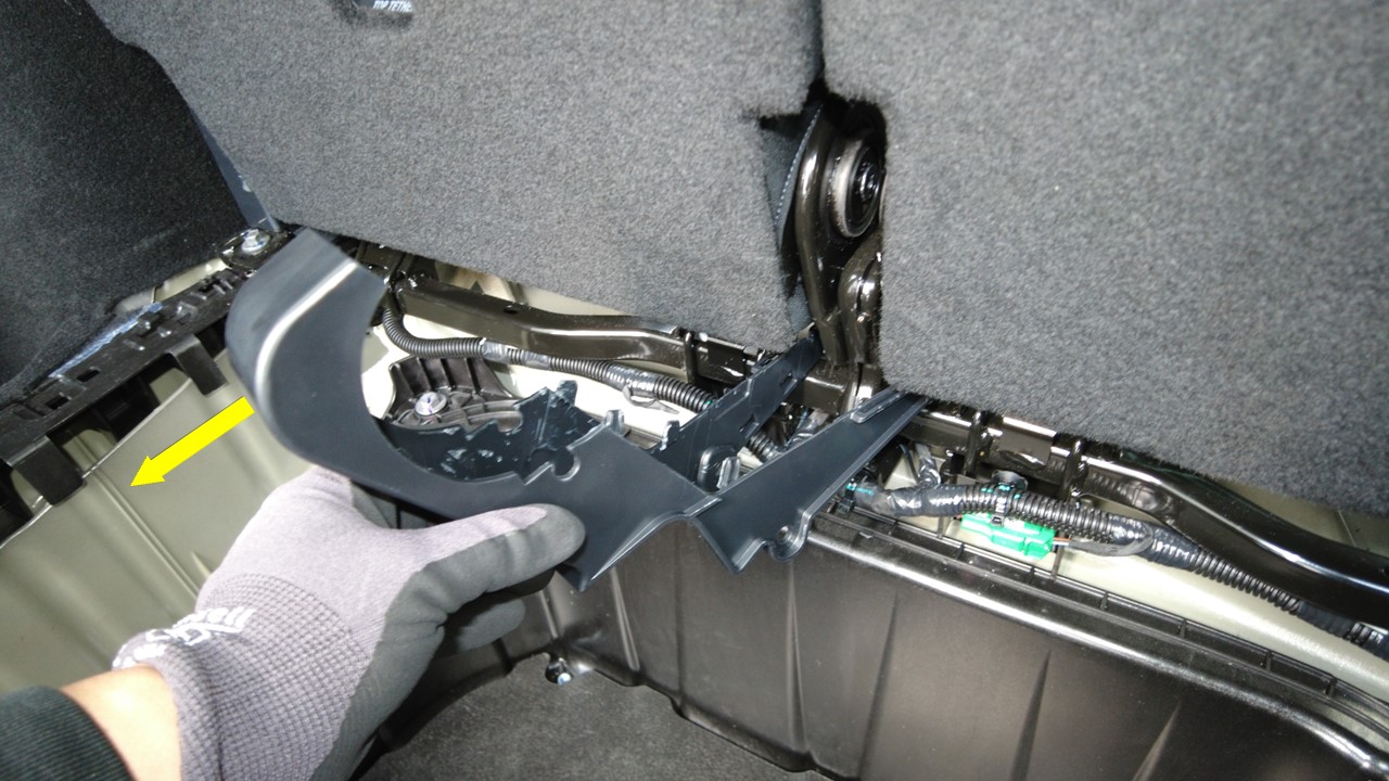 将第三排左侧锁扣线束夹(3 个)从中间内侧护罩上拆下。