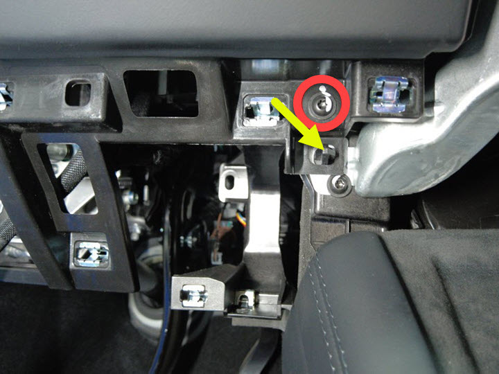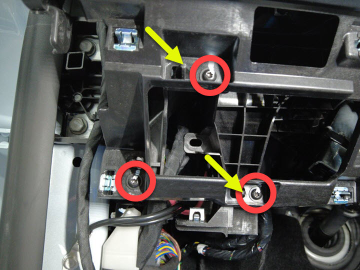 拆下将仪表板总成固定到横梁左下部的螺钉。