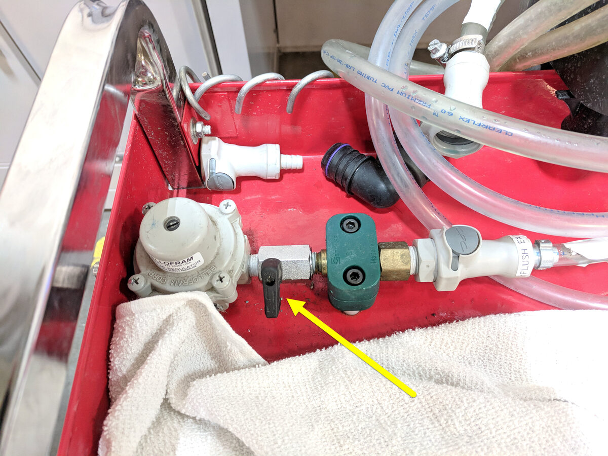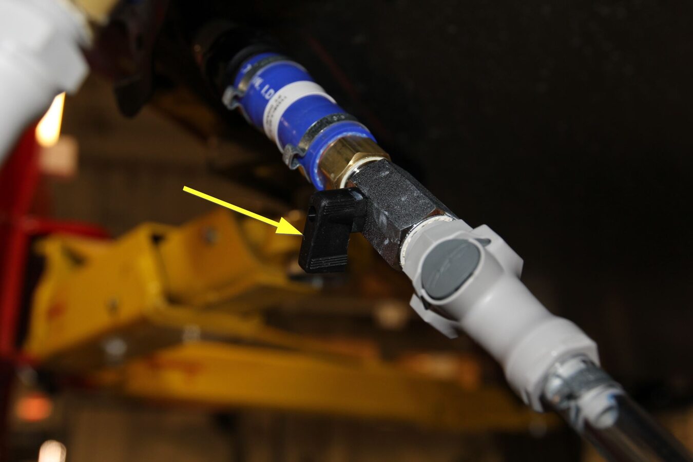 注Turn valve knob horizontal when coolant is no longer visibly draining