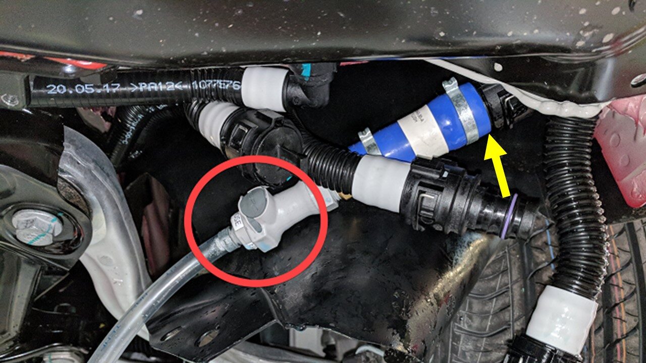 注1x clips, 1x plugs, Perform push-pull-push test to make sure hose is fully engaged. Loss of coolant greater than 1L requires coolant vacuum fill