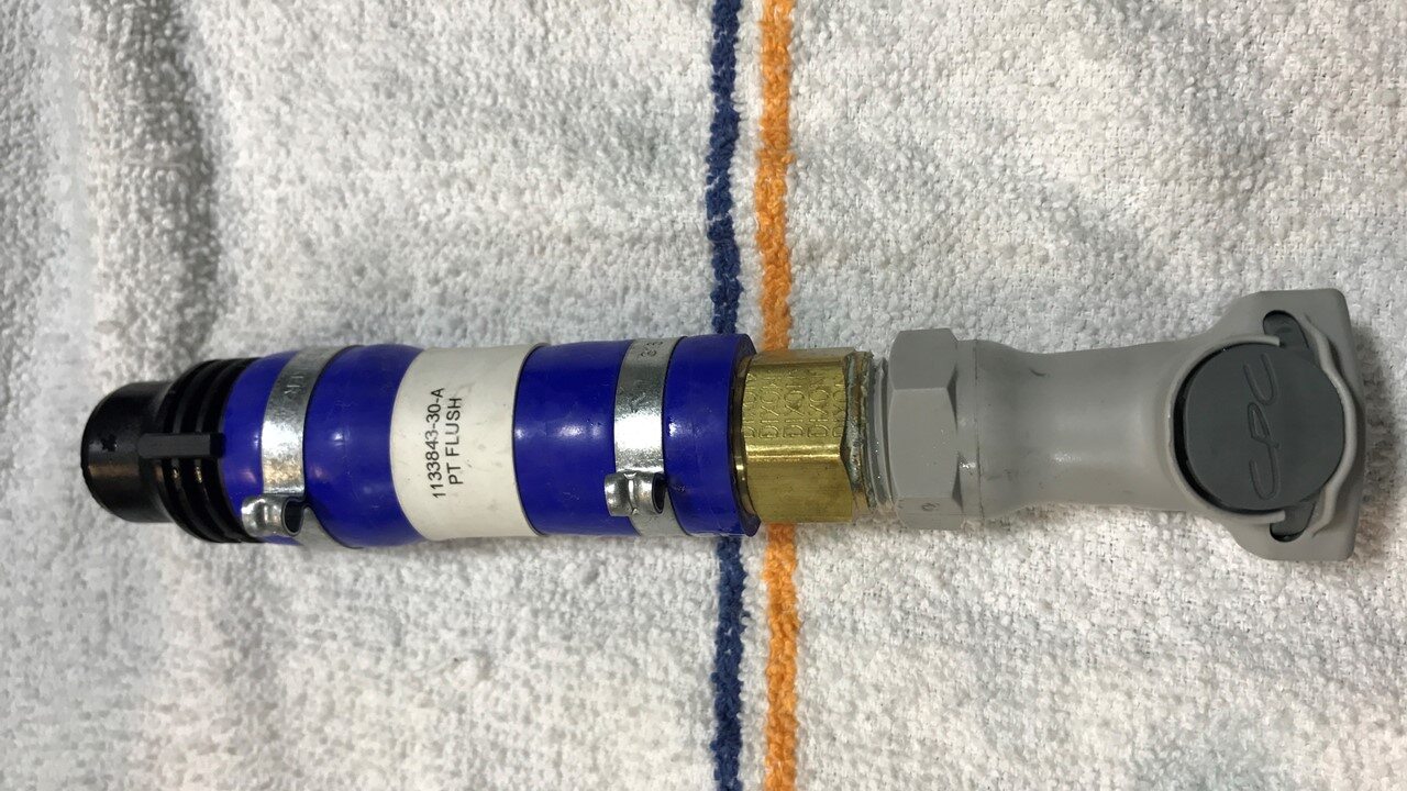 Disconnect PT flush fitting adapter from female side of PT return tube