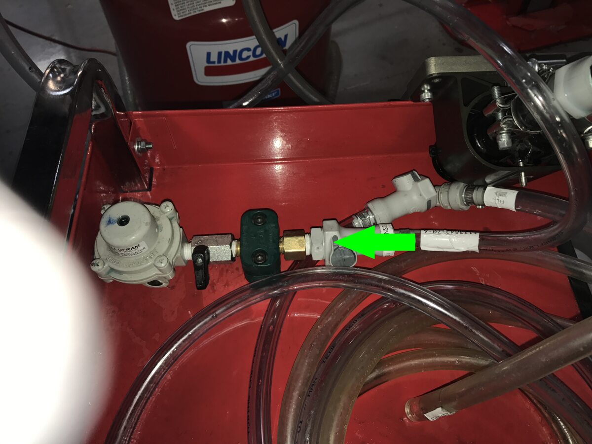 注The regulator valve is pre-set to 20 psi, When valve is set to horizontal position it is fully closed, Verify valve is in closed position