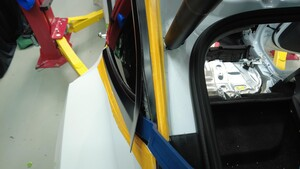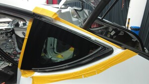 - 聚氨酯凝固期间,请使用胶带固定左后角窗玻璃。