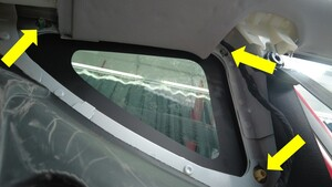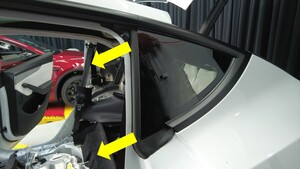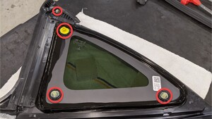 使用对角切割器破坏 LH 后角窗玻璃内侧的定位柱,使用一字螺丝刀协助拆下玻璃。