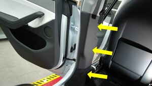 注确保车门密封条准确覆盖左侧 B 柱下饰板。