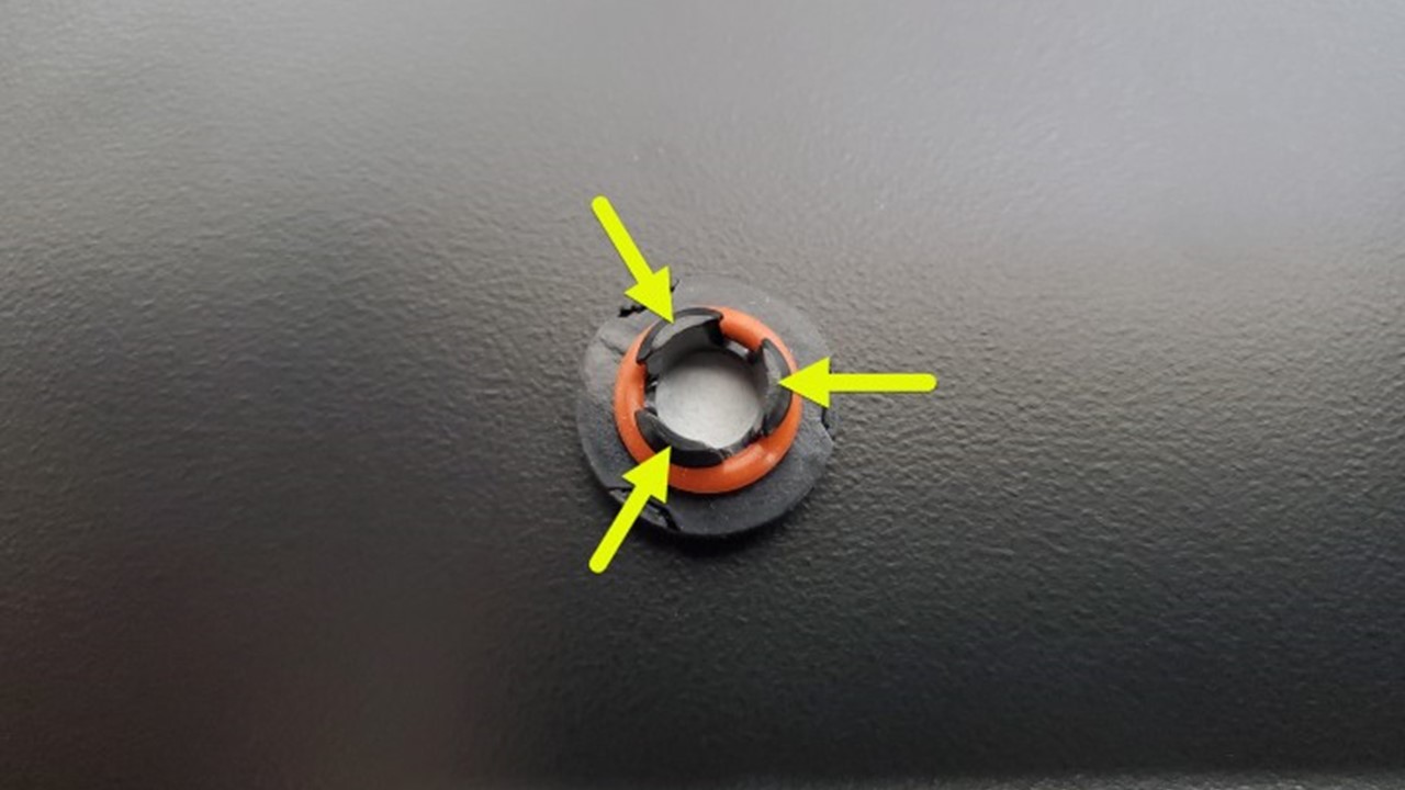 用一根手指斜着按压通气孔塞,检查并确保其已完全就位;如果通气孔塞松动或损坏,请更换;如未松动或损坏,则无需操作。