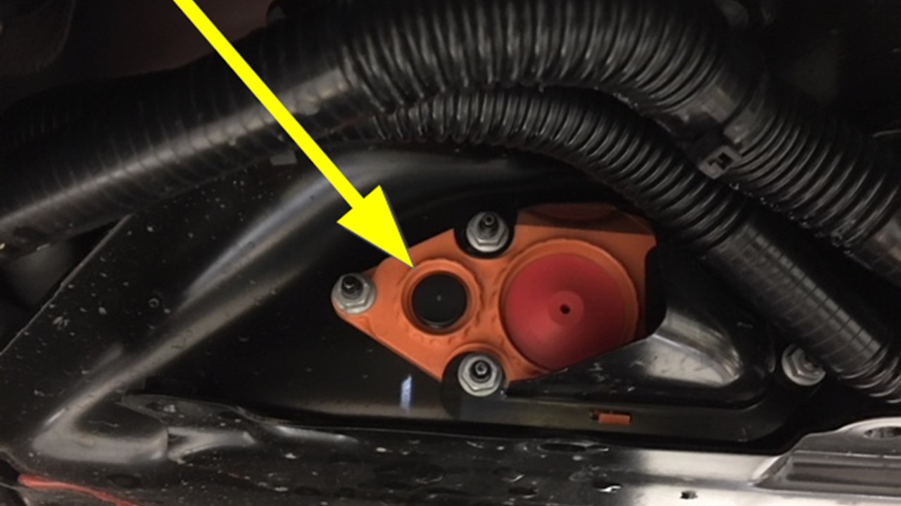拆下并弃置高压电池通风罩总成上的通气孔塞(2 个)。