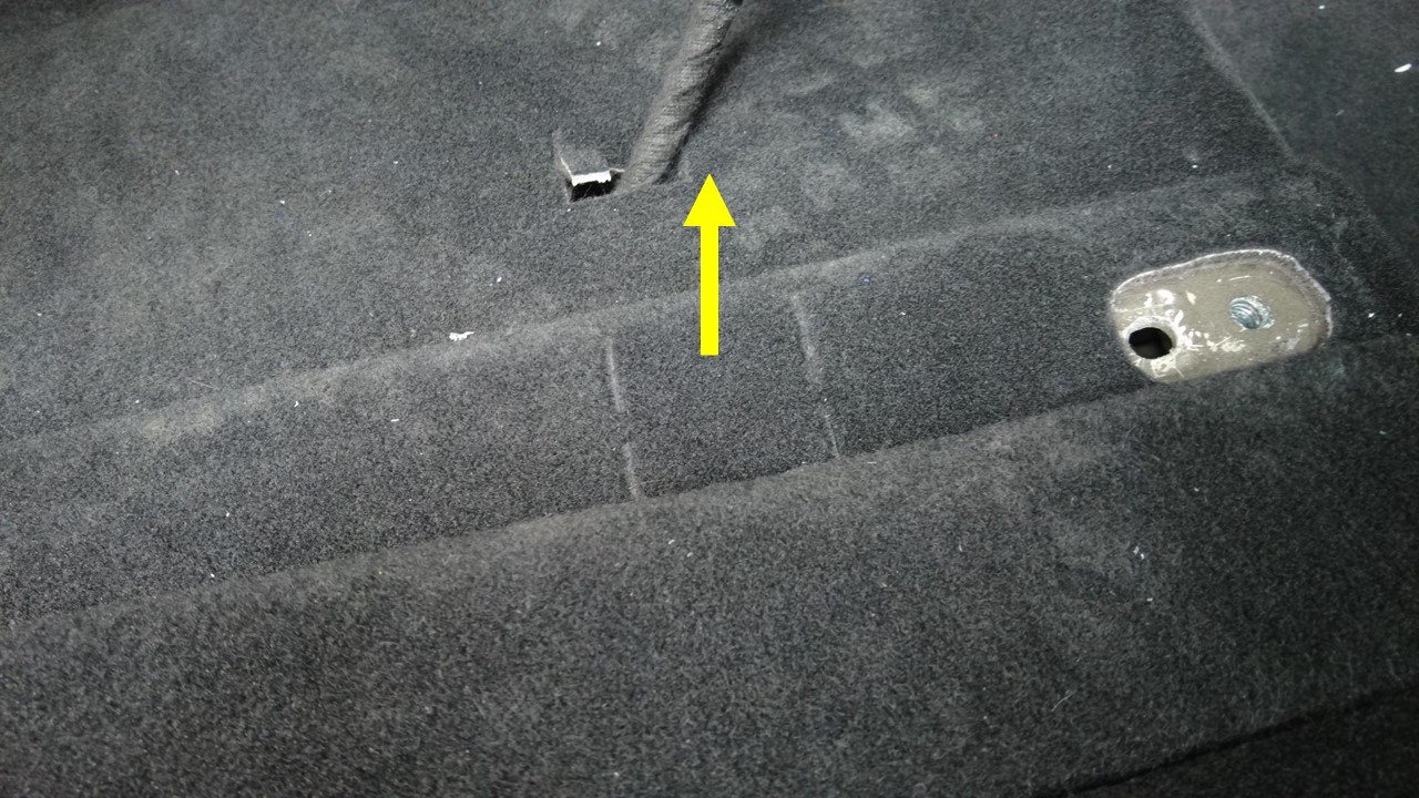 将第二排右侧座椅下方的地毯开孔折回原位。