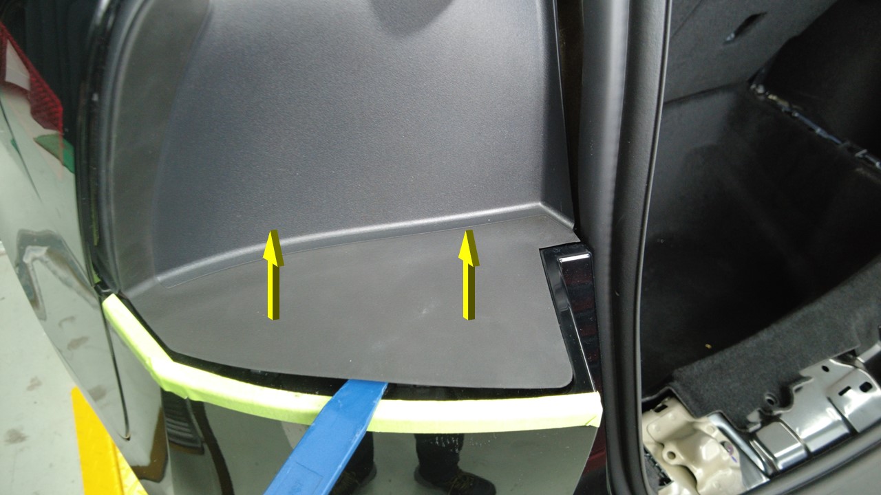 - 揭下后饰板上部左角上的所有遮蔽胶带。
