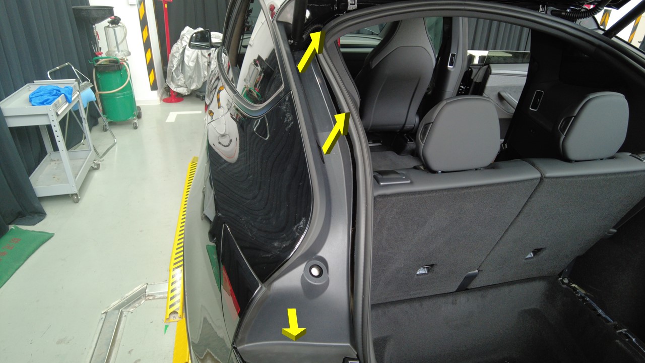 安装掀背尾门密封条。
