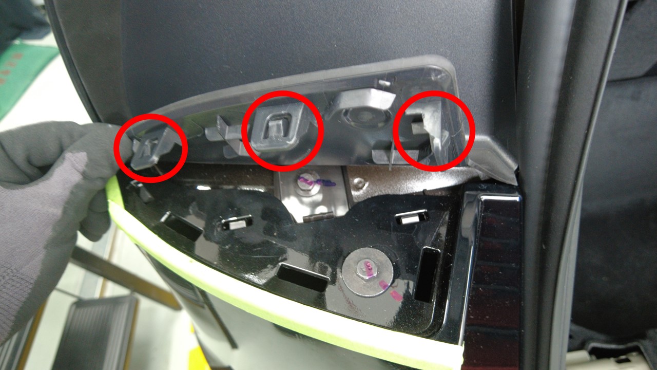 安装左后凹槽饰板底部的卡子(3 个)。